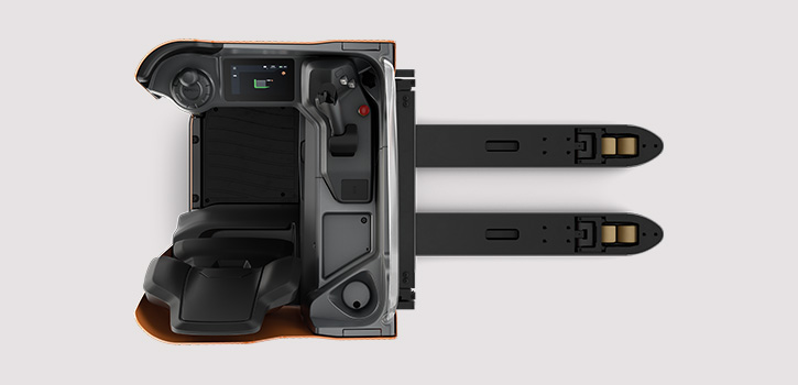 Safe operations are made possible thanks to automatic speed reduction controlling cornering speeds. A protective overhead guard and the enclosed driver compartment guarantee comfortable and safe driving.